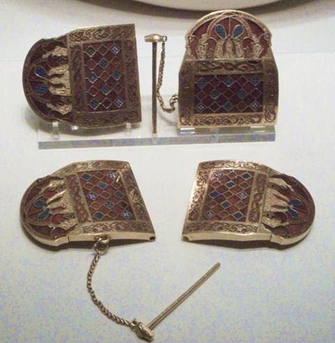uit de schat van Sutton Hoo. Deze schoudergespen hebben dezelfde functie als de