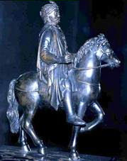 Waarschijnlijk is dit een beeldje van Karel de Grote. Hij