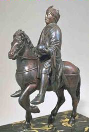 Dit beeldje doet denken aan het beeld van Marcus Aurelius in Rome. Het verschil