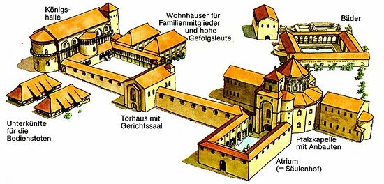 Karel de Grote reisde veel. Toen hij koning werd, gaf hij Odo von Metz opdracht om in Aken een paltz paleis te bouwen met een kapel.