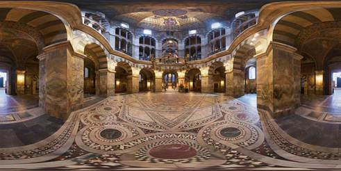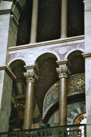 naar Aken vervoerd en opnieuw gebruikt bij de bouw van de Paltz kapel.